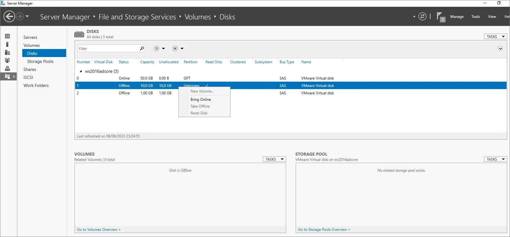 Now we can set them online from the Storage Panel