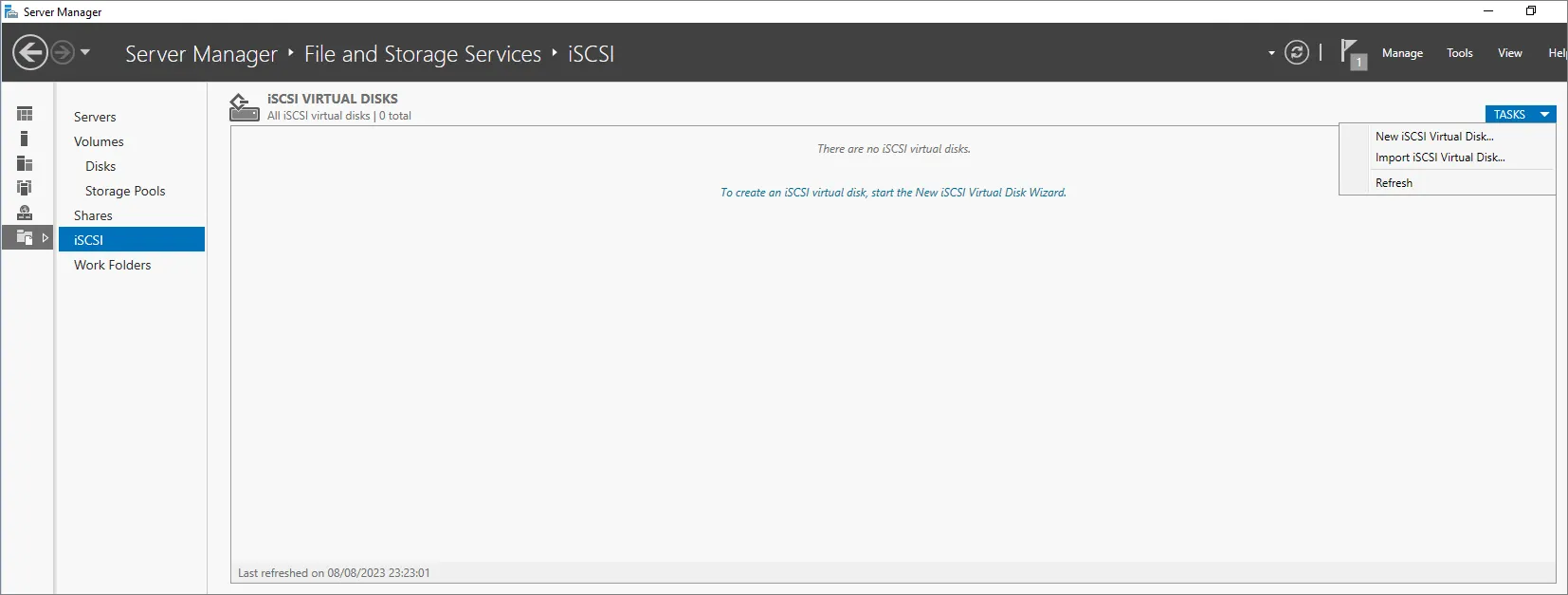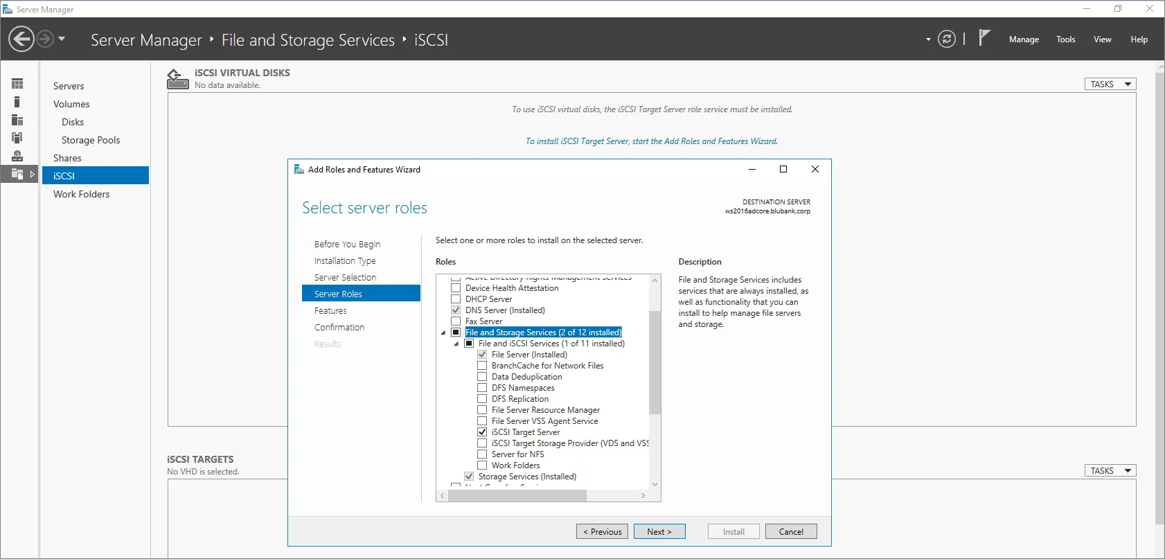 Let’s make sure we have the necessary Windows Server Role installed. We’ll be leveraging the Windows iSCSI for the virtual Disk assignation.