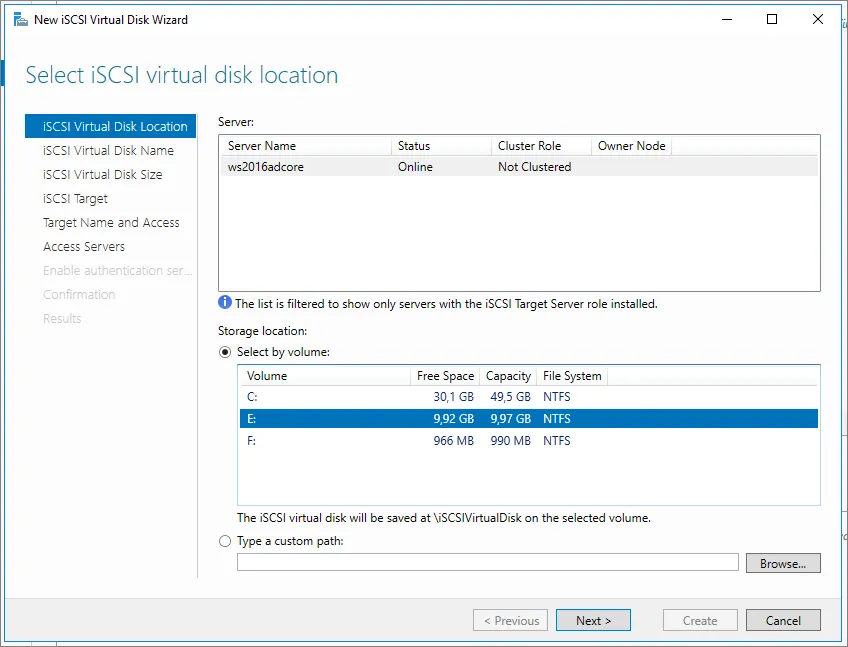 iSCSI virtual disk selection -
