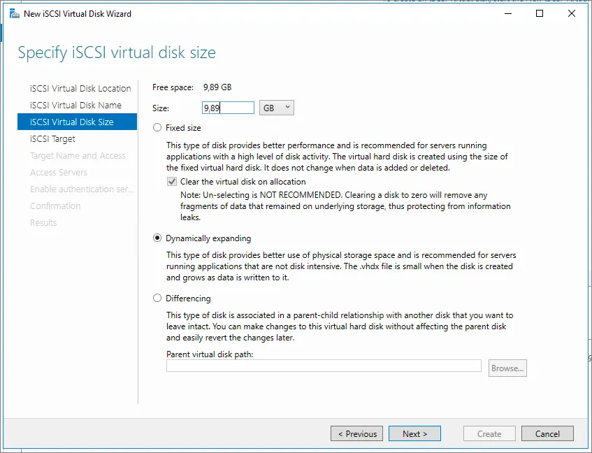 Virtual Disk size -