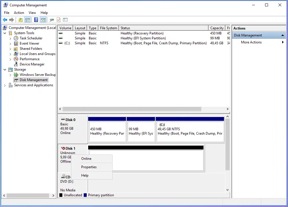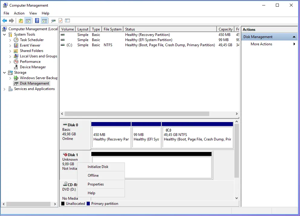 Until this point. we have connected the disk but it need to be initializaed so on Vault_1 go to Disk Manager. Check Disk Status and bring it online