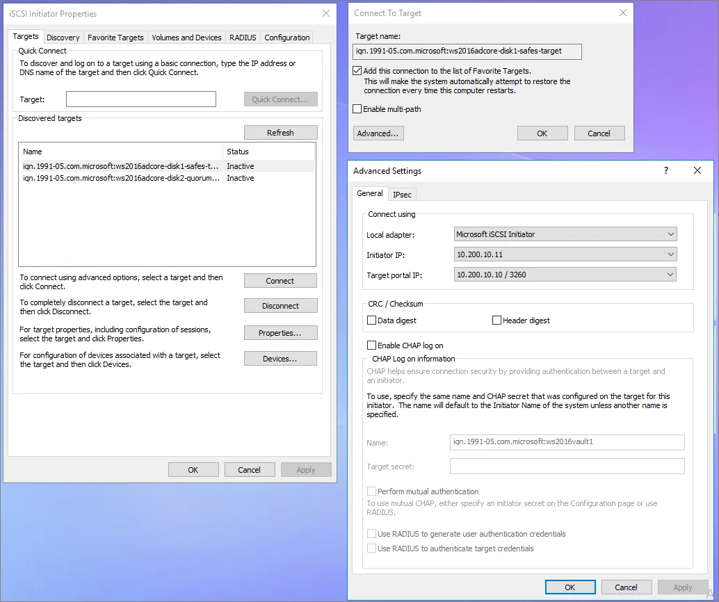- Local Adpater: Microsoft iSCSI Initiator
