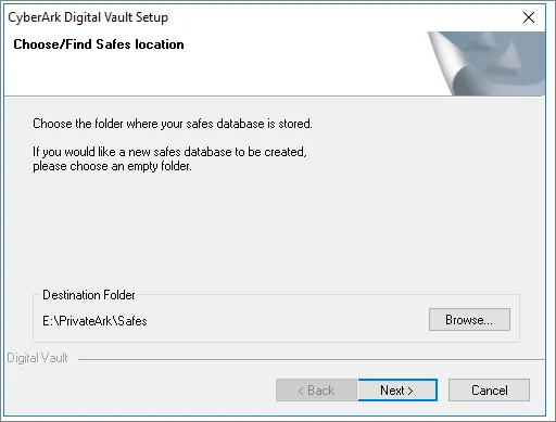 When prompted to choose the Safe location path, specify a path that is located on the shared storage of the cluster environment.