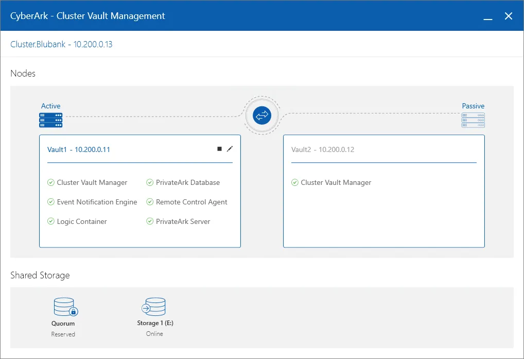 Configure the Cluster Storage by running PrivateArk\Server\ClusterVault\StorageManager.exe. Do this from an elevated command prompt